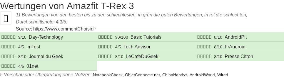 Hier sind alle 18 tests und Bewertungen zu Smartwatch Amazfit T-Rex 3 mit den 11 Bewertungen und Kommentaren der Tester in ihrem Test.