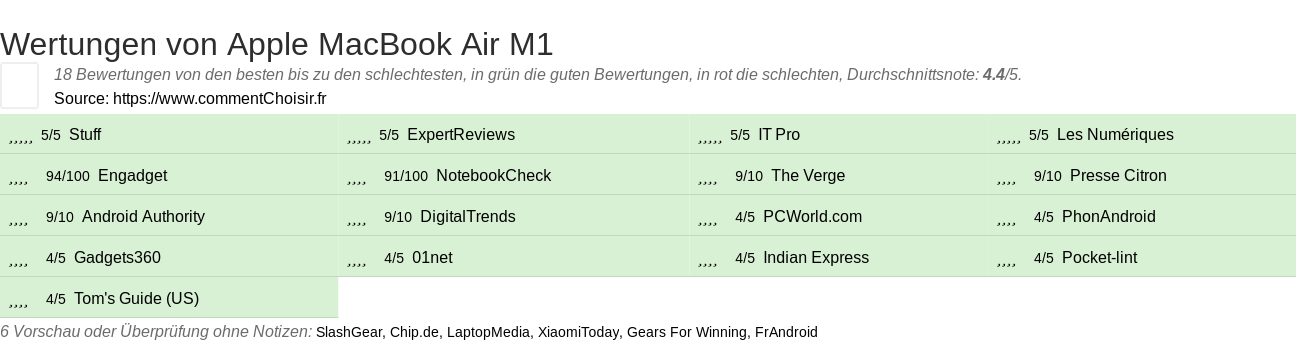 Welche Note hat Apple MacBook Air M1 bekommen?