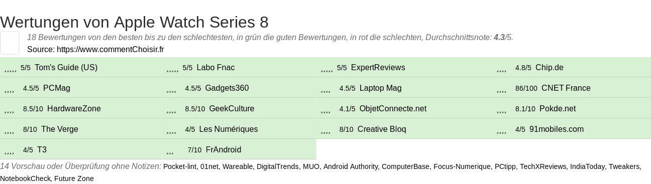 Hier sind alle 34 tests und Bewertungen zu Smartwatch Apple Watch Series 8 mit den 19 Bewertungen und Kommentaren der Tester in ihrem Test.