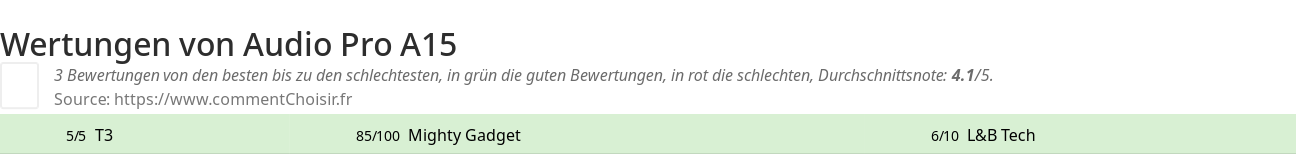 Wertungen von Audio Pro A15