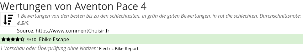 - 2 Testberichte und Meinungen mit 1 Bewertungen zum Aventon Pace 4