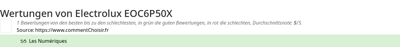 - 1 Testberichte und Meinungen mit 1 Bewertungen zum Electrolux EOC6P50X