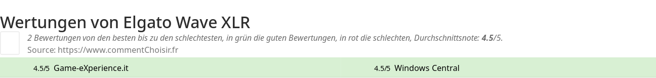 Hier sind alle 2 tests und Bewertungen zu Videospiele Elgato Wave XLR mit den 2 Bewertungen und Kommentaren der Tester in ihrem Test.