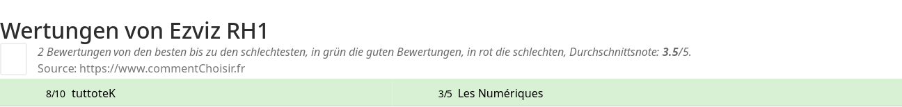 Hier sind alle 2 tests und Bewertungen zu Ezviz RH1 mit den 2 Bewertungen und Kommentaren der Tester in ihrem Test.