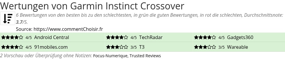 Zum besseren Vergleich haben wir nach den Vor- und Nachteilen von Garmin Instinct Crossover und den Bewertungen spezialisierter Websites gesucht.