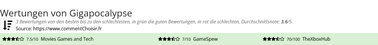 Hier sind alle 3 tests und Bewertungen zu Videospiele Gigapocalypse mit den 3 Bewertungen und Kommentaren der Tester in ihrem Test.