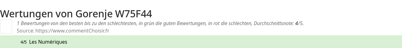 - 1 Testberichte und Meinungen mit 1 Bewertungen zum Gorenje W75F44
