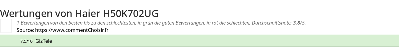 - 2 Testberichte und Meinungen mit 2 Bewertungen zum Haier H50K702UG