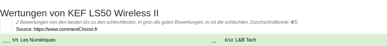 Hier sind alle 2 tests und Bewertungen zu Lautsprecher KEF LS50 Wireless II mit den 2 Bewertungen und Kommentaren der Tester in ihrem Test.