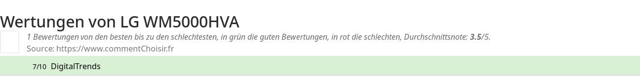 LG WM5000HVA test : Wir haben nur eine Rezension zu diesem Produkt gefunden, daher klingt es schwierig, einen globalen Ratschlag zu geben. Diese durchschnittliche Bewertung von 3.5/5 ist möglicherweise nicht repräsentativ.