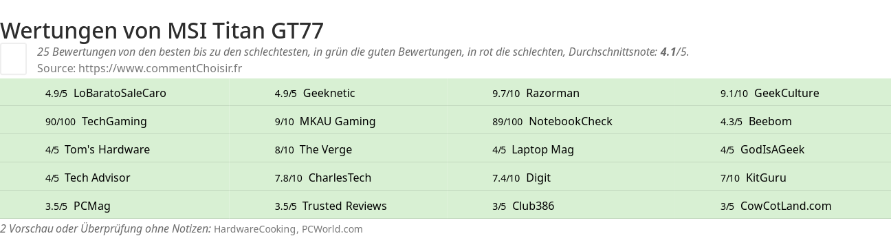 - 31 Testberichte und Meinungen mit 29 Bewertungen zum MSI Titan GT77