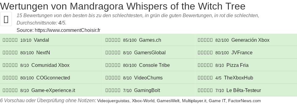 Welche Note hat Mandragora Whispers of the Witch Tree bekommen?