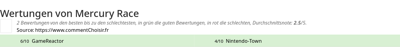 Hier sind alle 2 tests und Bewertungen zu Videospiele Mercury Race mit den 2 Bewertungen und Kommentaren der Tester in ihrem Test.