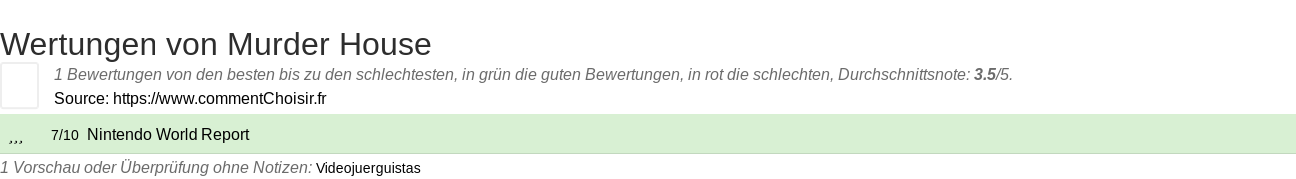 Murder House im Test: 2 Reviews und 1 Bewertungen — Durchschnitt: 3.5/5