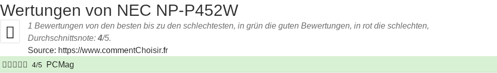 NEC NP-P452W test : Wir haben nur eine Rezension zu diesem Produkt gefunden, daher klingt es schwierig, einen globalen Ratschlag zu geben. Diese durchschnittliche Bewertung von 4/5 ist möglicherweise nicht repräsentativ.