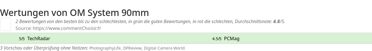 Hier sind alle 5 tests und Bewertungen zu Kameraobjektive OM System 90mm mit den 2 Bewertungen und Kommentaren der Tester in ihrem Test.
