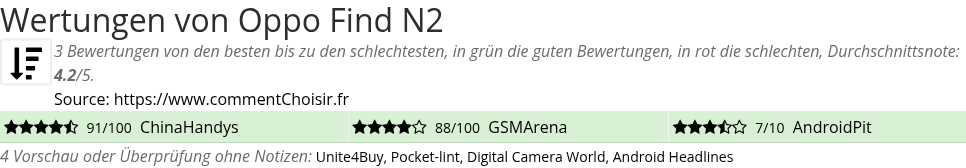 Wertungen von Oppo Find N2