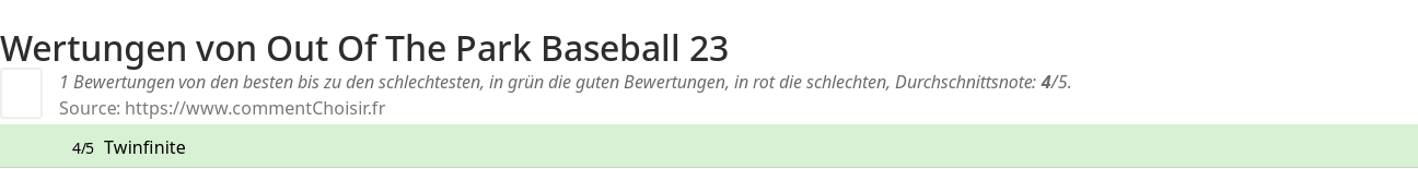 - 1 Testberichte und Meinungen mit 1 Bewertungen zum Out Of The Park Baseball 23
