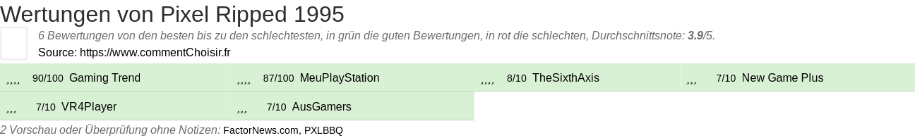 Pixel Ripped 1995 im Test: 8 Reviews und 6 Bewertungen — Durchschnitt: 3.9/5