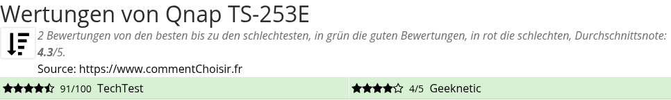 Qnap TS-253E test : Mit einer durchschnittlichen Bewertung von 4.3/5 können Sie Qnap TS-253E mit geschlossenen Augen (oder fast) kaufen. Die Meinungen der Tester scheinen einhellig zu sein!