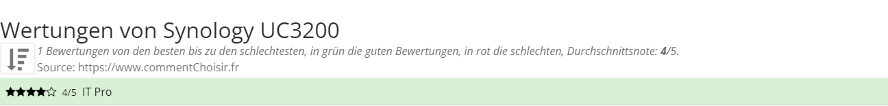 Synology UC3200 test : Wir haben nur eine Rezension zu diesem Produkt gefunden, daher klingt es schwierig, einen globalen Ratschlag zu geben. Diese durchschnittliche Bewertung von 4/5 ist möglicherweise nicht repräsentativ.