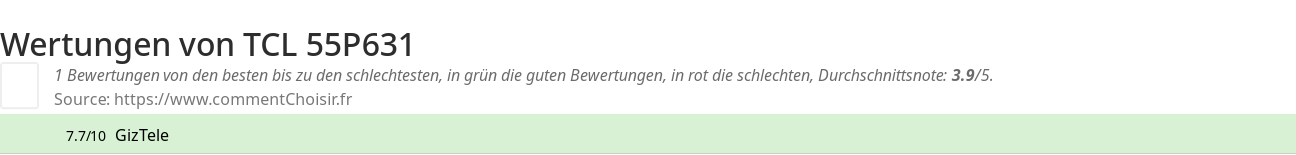 Hier sind alle 2 tests und Bewertungen zu Fernseher TCL 55P631 mit den 2 Bewertungen und Kommentaren der Tester in ihrem Test.