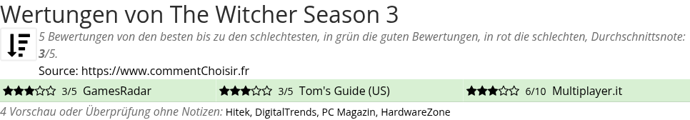 The Witcher Season 3 im Test: 9 Reviews und 5 Bewertungen — Durchschnitt: 3/5