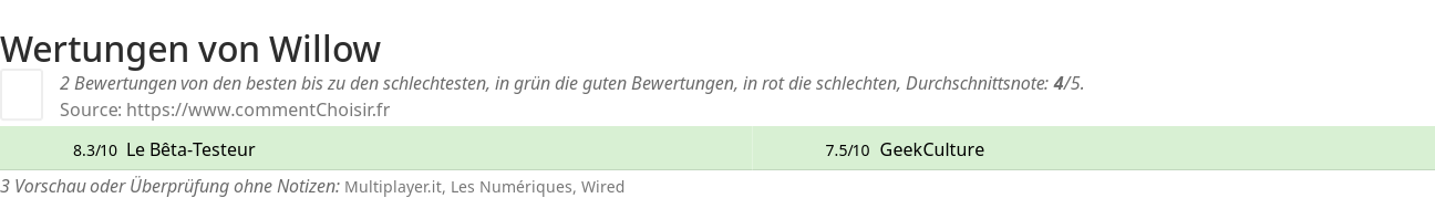 Wertungen von Willow