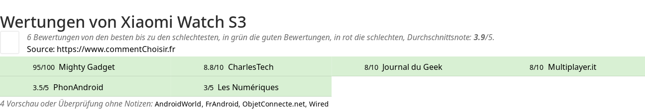 Zum besseren Vergleich haben wir nach den Vor- und Nachteilen von Xiaomi Watch S3 und den Bewertungen spezialisierter Websites gesucht.