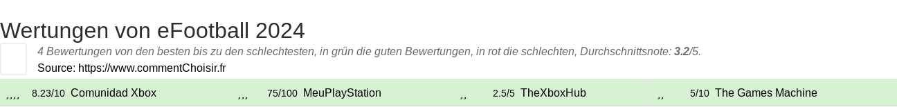 Hier sind alle 4 tests und Bewertungen zu Videospiele eFootball 2024 mit den 4 Bewertungen und Kommentaren der Tester in ihrem Test.