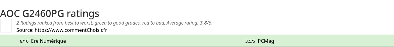 Theses reviews and tests from Monitors magazines and websites give 2 ratings, we get this average rating to this AOC product : 3.5/5.