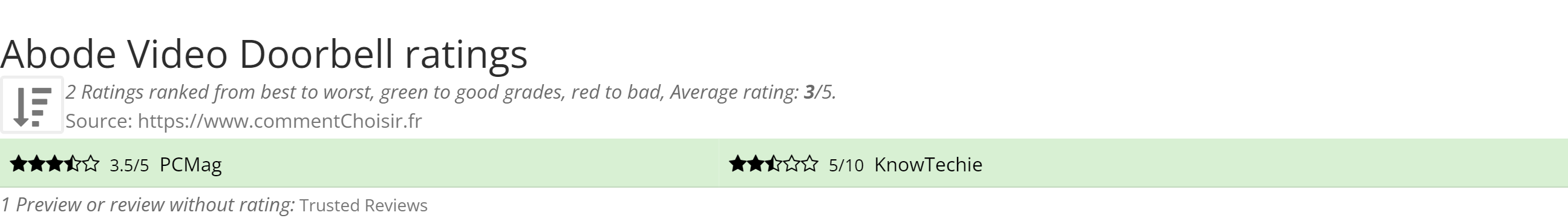 Theses reviews and tests from Security Camera magazines and websites give 2 ratings, we get this average rating to this Abode product : 2.8/5.