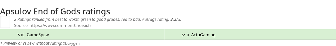 | 7/10 GameSpew | 6/10 ActuGaming |