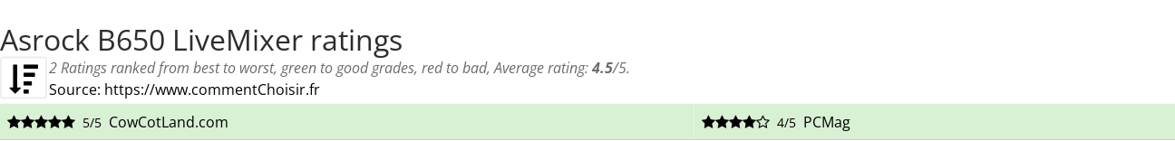 Theses reviews and tests from Components magazines and websites give 2 ratings, we get this average rating to this Asrock product : 4.5/5.