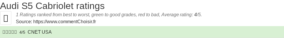 Theses reviews and tests from Cars magazines and websites give 1 ratings, we get this average rating to this Audi product : 4/5.