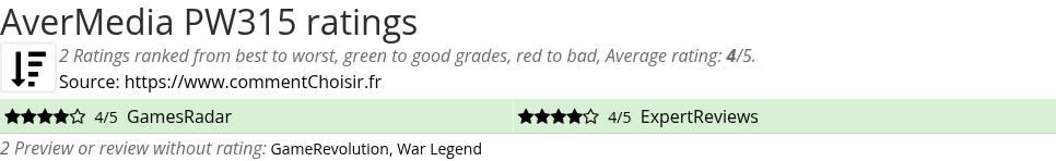 Theses reviews and tests from Media Players magazines and websites give 2 ratings, we get this average rating to this AverMedia product : 4/5.