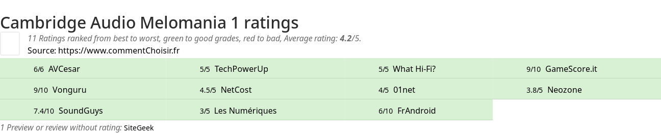 Theses reviews and tests from Video Games magazines and websites give 11 ratings, we get this average rating to this Cambridge Audio product : 4/5.