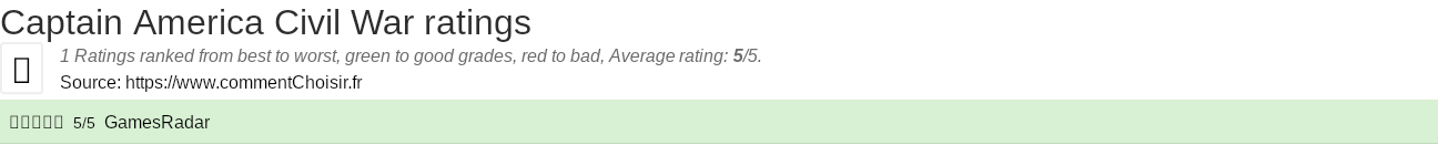 - 1 reviews and opinions with 1 ratings for Captain America Civil War