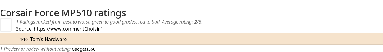 Theses reviews and tests from Hard Drive magazines and websites give 1 ratings, we get this average rating to this Corsair product : 2/5.