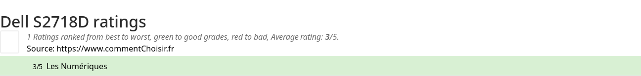 Theses reviews and tests from Monitors magazines and websites give 1 ratings, we get this average rating to this Dell product : 3/5.