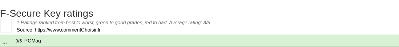 Theses reviews and tests from Softwares magazines and websites give 1 ratings, we get this average rating to this F-Secure product : 3/5.