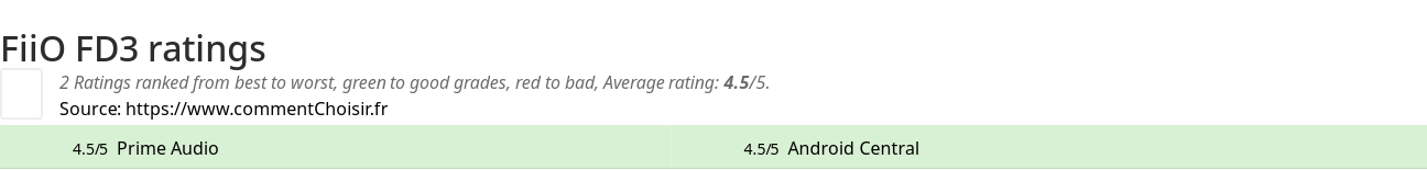 Theses reviews and tests from Headphones magazines and websites give 2 ratings, we get this average rating to this FiiO product : 4/5.
