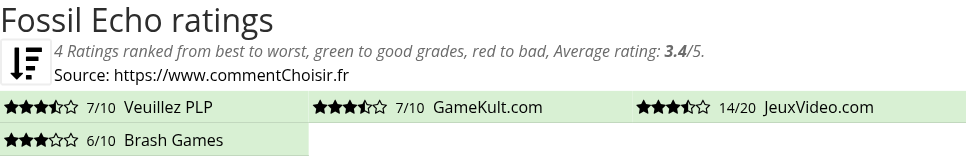 Theses reviews and tests from Video Games magazines and websites give 4 ratings, we get this average rating to this Fossil product : 3.4/5.