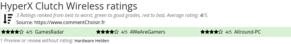 Theses reviews and tests from Video Games magazines and websites give 3 ratings, we get this average rating to this HyperX product : 4/5.