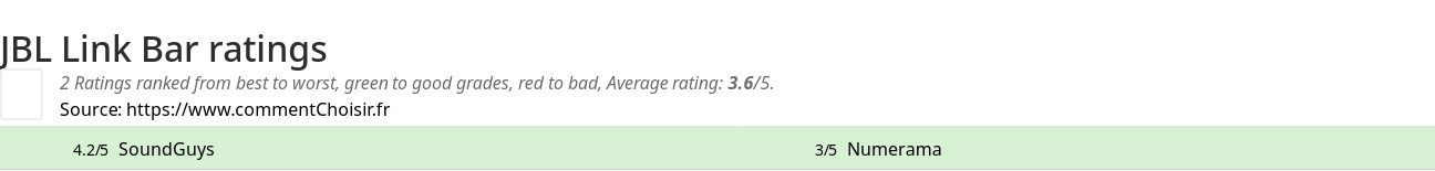 Theses reviews and tests from Soundbar magazines and websites give 2 ratings, we get this average rating to this JBL product : 3.5/5.