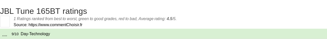 JBL Tune 165BT review : We found only one review on this product, so it sounds difficult to give a global advice, this average rating of 4.5/5 may not be representative.