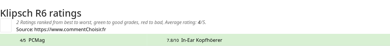 Theses reviews and tests from Video Games magazines and websites give 2 ratings, we get this average rating to this Klipsch product : 3.8/5.