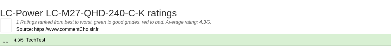 LC-Power LC-M27-QHD-240-C-K review : We found only one review on this product, so it sounds difficult to give a global advice, this average rating of 4/5 may not be representative.
