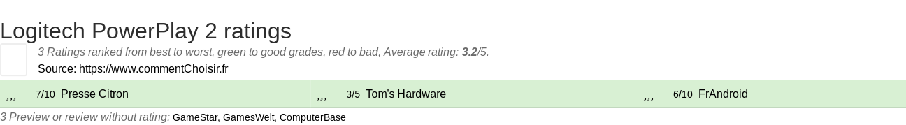 | 7/10 Presse Citron | 3/5 Tom's Hardware | 6/10 FrAndroid |