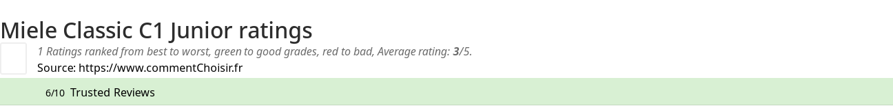 Miele Classic C1 Junior review : We found only one review on this product, so it sounds difficult to give a global advice, this average rating of 3/5 may not be representative.